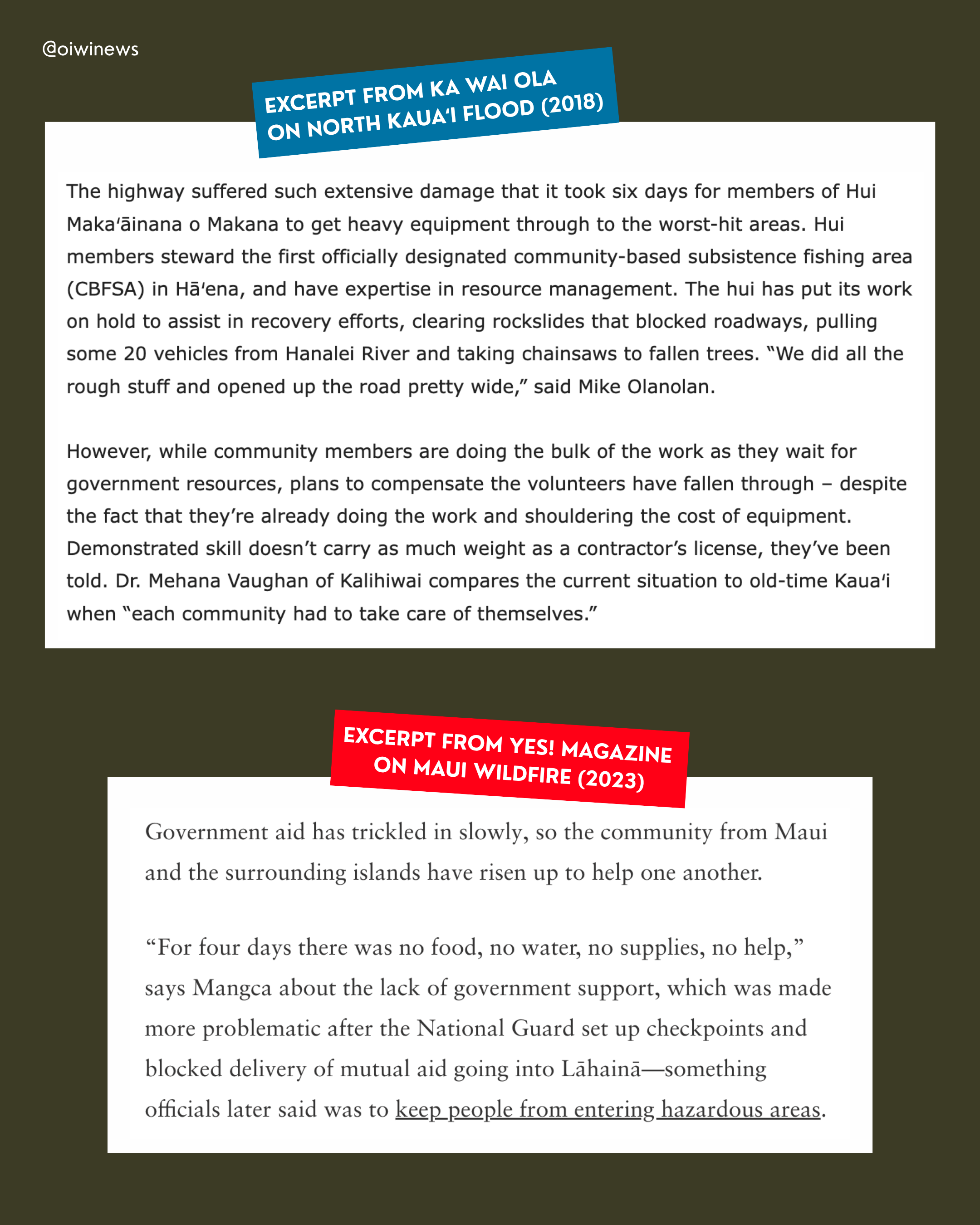 Here are a few relevant accounts from our history of how our kaiāulu has shown up as our own first responders.